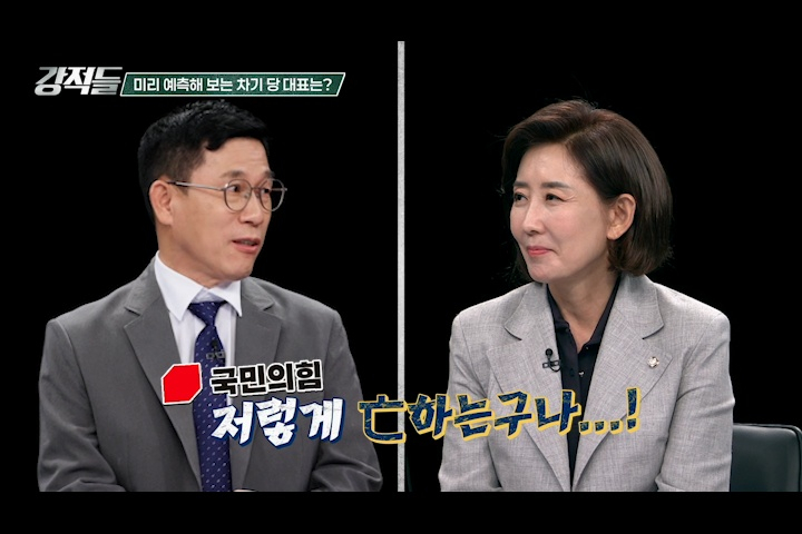 지난 23일 방송된 TV CHOSUN '강적들'이 MC 진중권 동양대 교수와 임윤선 변호사, 패널 나경원 국민의힘 의원, 홍익표 전 더불어민주당 원내대표, 정옥임 전 의원, 김규완 전 CBS 논설실장과 함께 국민의힘 전당대회 결선 전망부터 이재명 대통령 지지율 하락, 엇갈리는 당정, 검찰개혁, 조국 전 장관의 행보, 한미정상회담까지 굵직한 현안들을 '등골 서늘한 직격 발언'으로 분석했다.