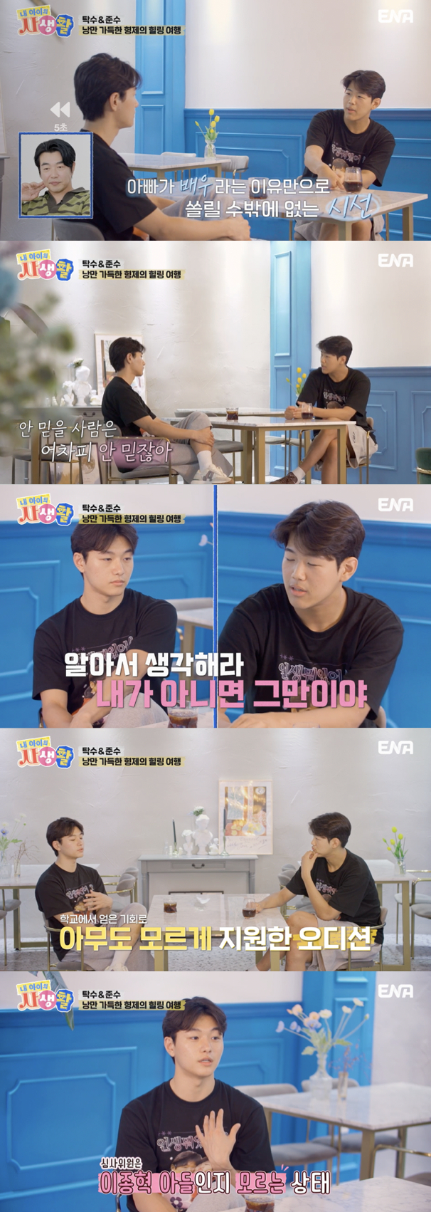 24일 방송된 ENA 예능 프로그램 '내 아이의 사생활 (이하 '내생활')' 35회에서는 '탁준형제' 탁수와 준수가 인생 첫 낭만 가득한 형제 여행을 떠나는 모습이 그려졌다.