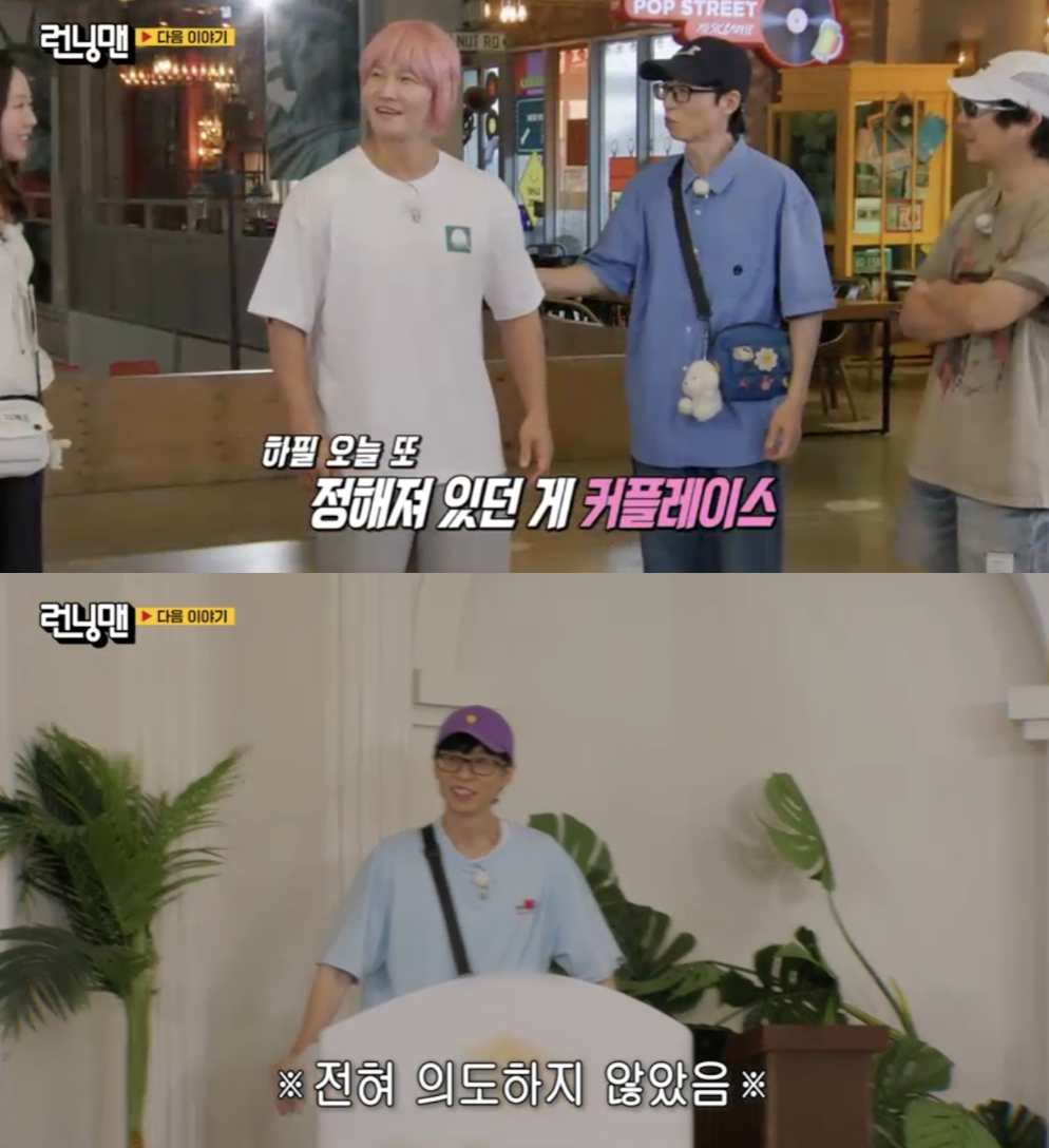 이날 게스트로는 배우 장동윤과 김아영이 함께 출연해 커플 레이스를 펼쳤으며, 촬영은 실제 웨딩홀에서 진행돼 묘한 분위기를 자아냈다. 이를 본 유재석은 "오늘 종국이 결혼 이벤트냐", "너는 왜 결혼을 이런식으로 발표하는거야?"라며 농담을 던져 웃음을 유발했다.