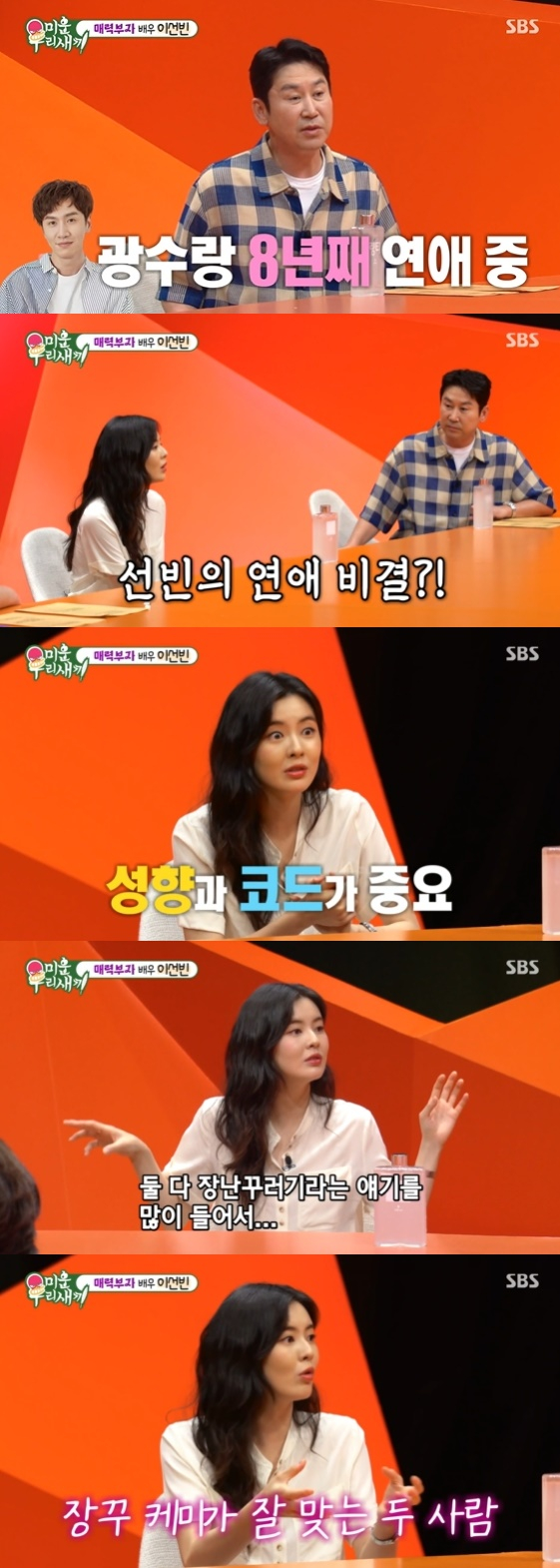 24일 방송된 SBS 예능 프로그램 '미운 우리 새끼'(이하 '미우새')에는 이선빈이 스페셜 MC로 출연해 이광수와 8년째 만남을 유지 중인 비결을 털어놨다.