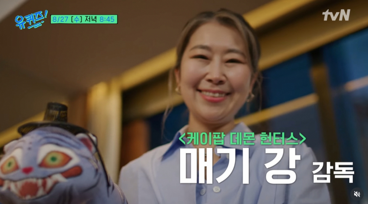 tvN '유퀴즈 온더 블럭'은 25일 '케이팝 데몬 헌터스'를 만든 메기 강 감독의 출연분 일부를 공개했다. 제작진은 오는 27일 해당 출연분을 공개하며 방송에는 메기 강 감독과 함께 세계 하계 유니버시아드 대회 한국 최초 육상 계주 금메달을 따낸 주역 4인방과 빌 게이츠 등도 출연한다.