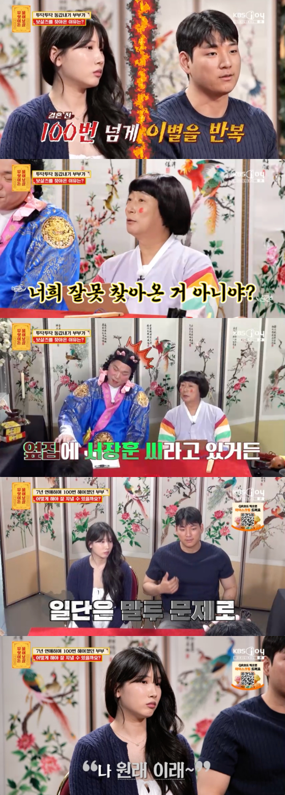 이날 동갑내기 부부 남편은 "아기가 생겨서 결혼을 일찍 하게 됐다"며 "연애할 때도 100번 넘게 헤어졌었는데, 결혼 후에도 계속 싸우고 있다"고 고민을 토로했다.