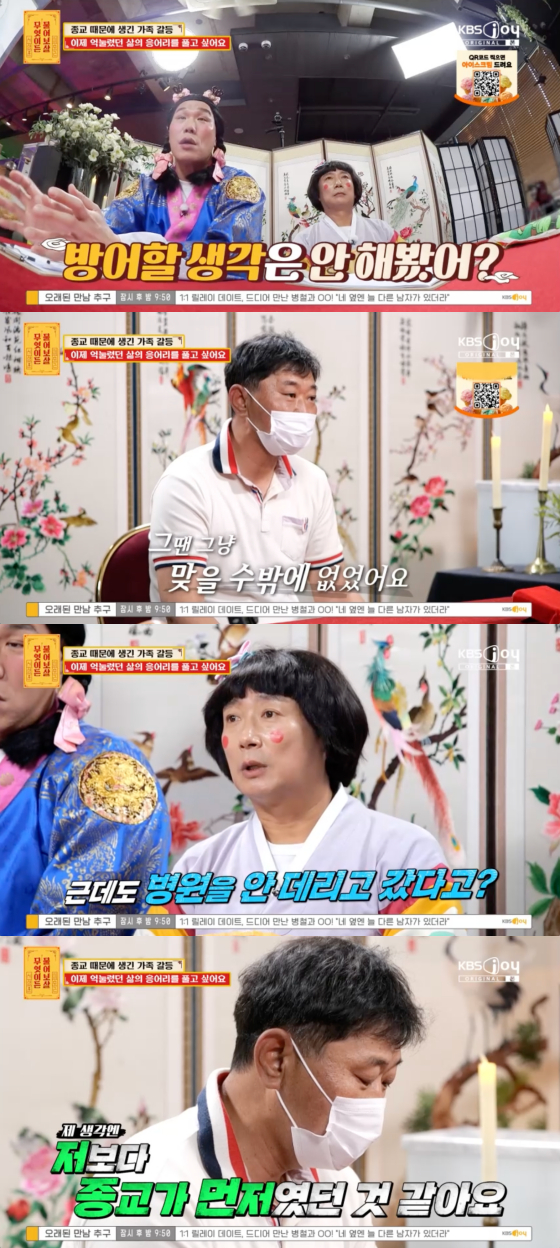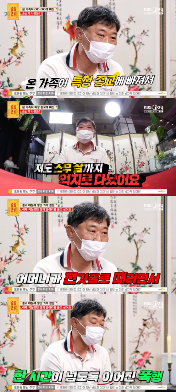 25일 방송된 KBS Joy 예능 프로그램 '무엇이든 물어보살'에는 온가족이 특정 종교에 빠져 있다는 40대 사연자가 출연했다.