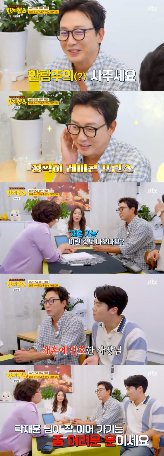 탁재훈의 사주 풀이를 듣던 김희선은 사주가에게 "탁재훈이 지금은 솔로인데 재혼이 가능한지도 알 수 있냐"고 질문했다.