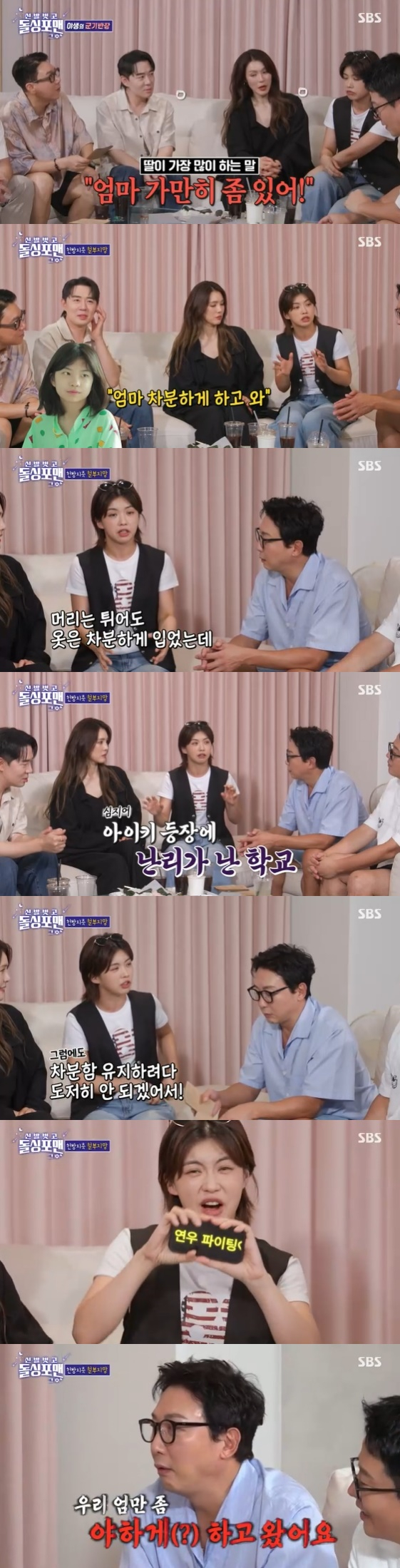 이어 "옷은 차분하게 입고 갔는데 이미 난 아이키인 걸 어떡하냐. 이미 초등학교 애들은 난리가 났다. 참고 있다가 도저히 안되겠어서 휴대전화 전광판에 '연우 화이팅'이라고 써서 들고 있었다. 너무 창피해하더라. 그 뒤로는 엄마를 안 부른다. 아빠가 간다"라고 고백해 웃음을 자아냈다.