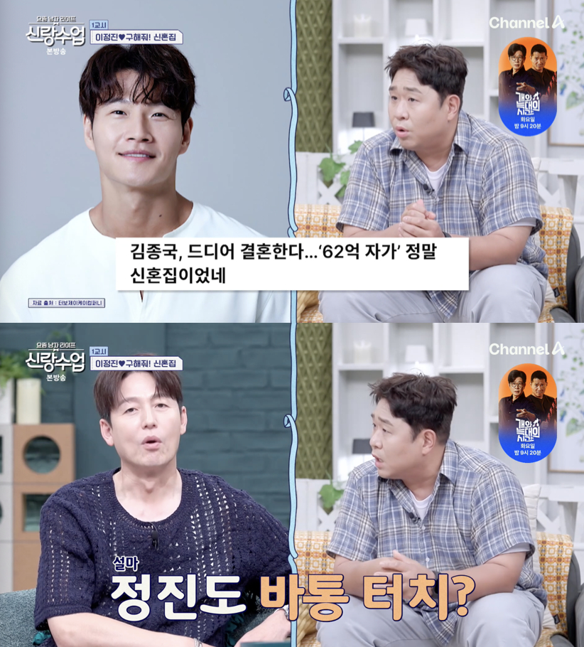 이 장면을 스튜디오에서 지켜보던 문세윤은 최근 신혼집 구매와 함께 결혼 소식을 전한 김종국을 언급했다. 그는 "김종국 형님도 최근에 결혼 소식이 올라왔다. (이정진 씨도) 그 시작을 함께 하려는 거 아니냐"라며 의문을 제기했다.