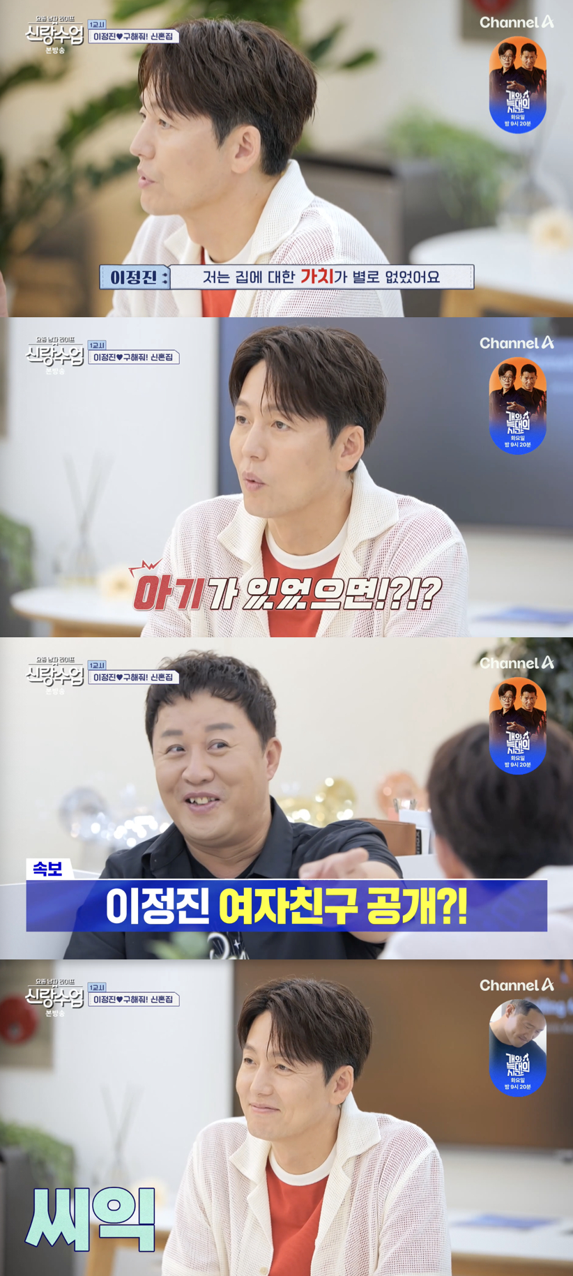 27일 방송된 채널A '요즘 남자 라이프 신랑수업'에서는 이정진이 신혼집을 알아보기 위해 절친 정준하를 찾아가 조언을 구하는 모습이 그려졌다.