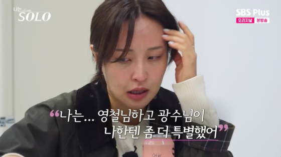 마음을 추스린 정숙은 "영철, 광수 님이 나한테는 좀 더 특별했다. 그래서 슈퍼 데이트 때 둘에 대한 내 감정을 확인하고 싶었다. 어차피 영철 님한테 쓰려고 했었다. 그런데 영수가 더 이성적인 끌림이 있었던 것 같다"고 설명했다.