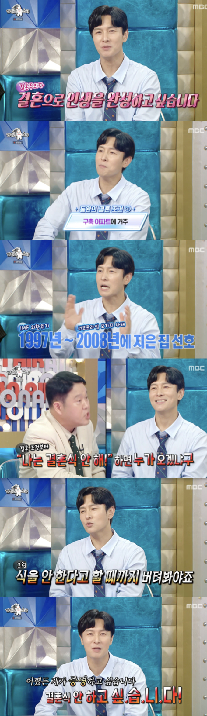 이날 방송에서 47년째 결혼 준비 중인 결혼주의자라고 소개 된 김동완은 동의하며 자신은 '비혼주의자'가 아니라고 강조했다.