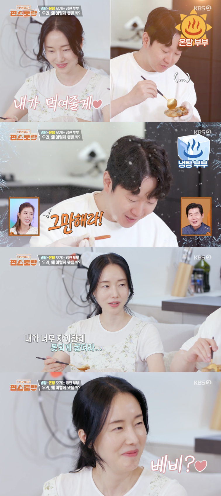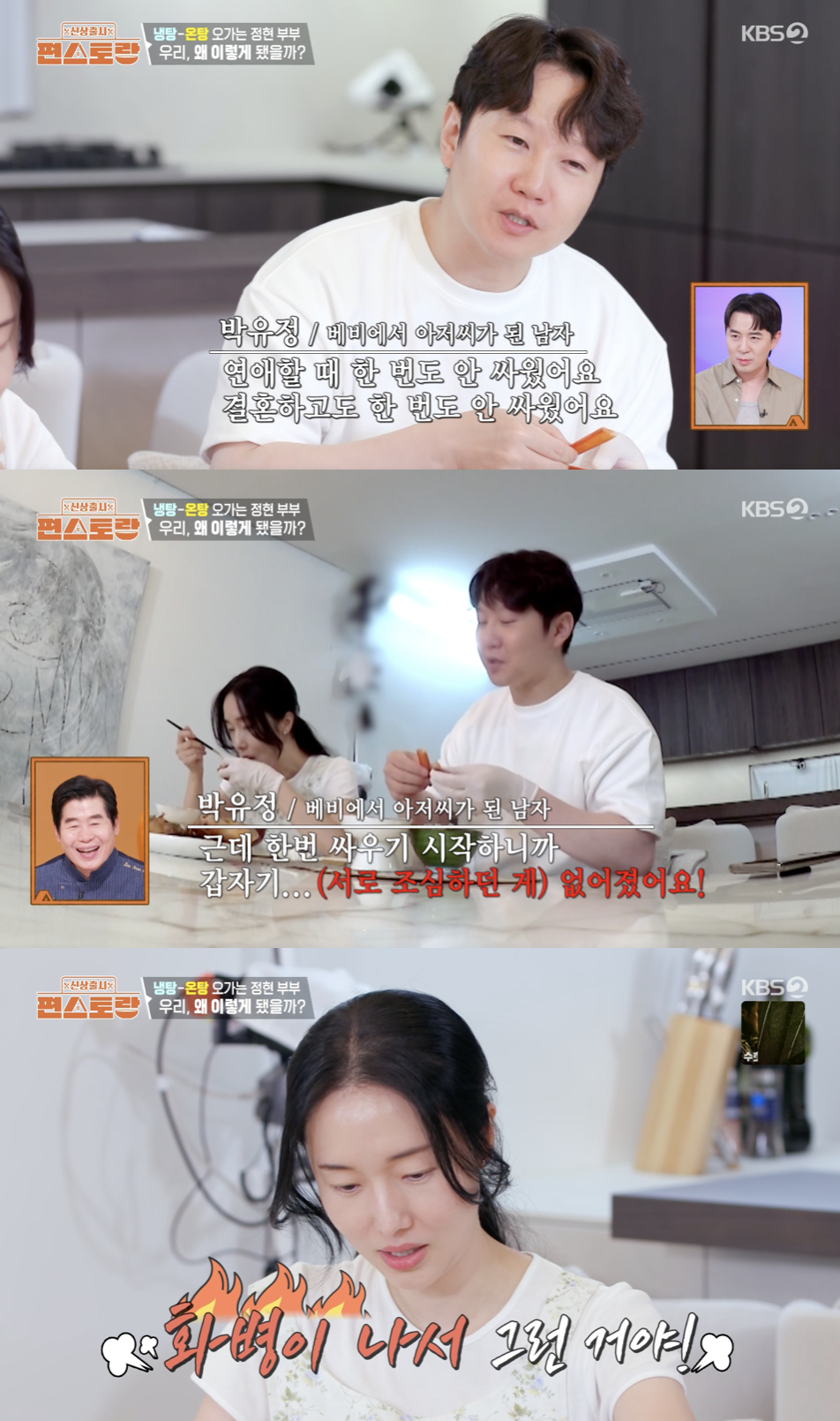 29일 방송된 KBS 2TV 예능 프로그램 '신상출시 편스토랑'(이하 '편스토랑')에서는 하루에도 몇 번씩 냉탕과 온탕을 오가며 웃음을 주는 이정현 부부의 결혼 생활이 그려졌다.