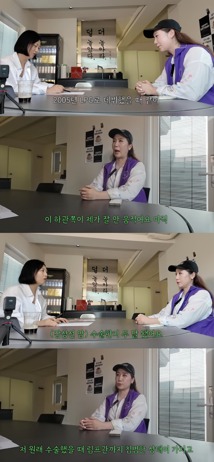 그는 "하관쪽이 잘 안 움직인다. 느낌이 안 난다. 수술한 지 두 달 됐다. 다행히 목소리가 이 정도는 나온다. 저는 정말 운이 좋았다. 원래 수술했을 때 림프관까지 침범한 상태여서 좀만 늦었으면 많이 안 좋았을 거라고 하더라"라고 말해 모두를 놀라게 했다.