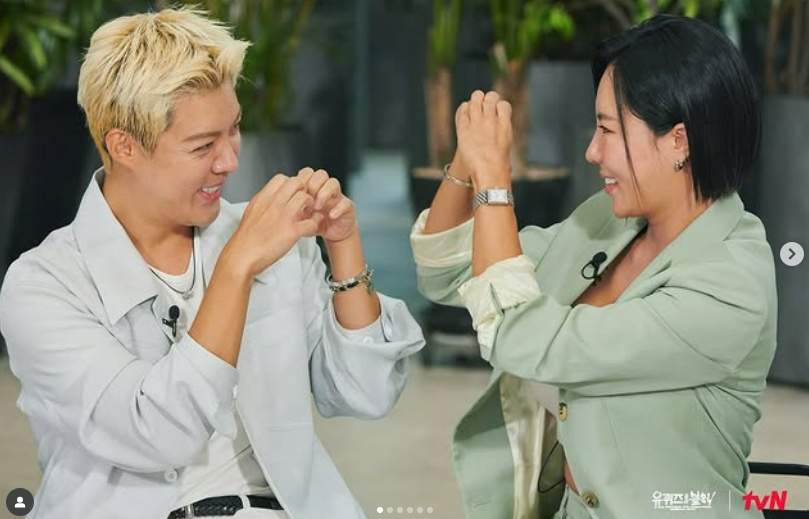 사진 속에는 이상화와 강남이 '유퀴즈'에 동반 출연한 모습이 있었다.