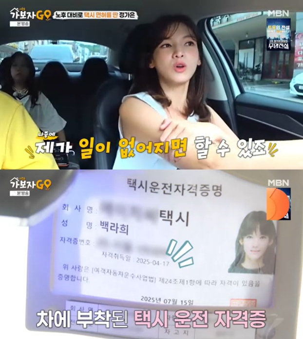 이날 먼저 10살 딸을 키우고 있는 싱글맘 정가은이 택시운전사로 등장했다. 그는 "제 택시다. 자격증 딴 지는 2달 됐다. 운전 경력은 30년 됐다. 한 번에 자격증을 땄다"라고 말했다.