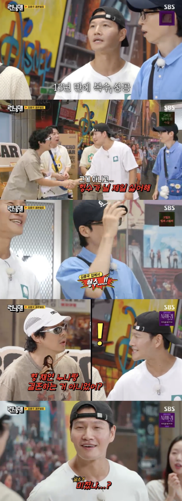이날 방송에서 김종국이 직접 결혼 소식을 전하자, 하하는 특유의 장난기를 발휘하며 "우리 고깃집 잘 될 거야 형. 걱정하지 마, 형. 내가 살림에 보탤게"라고 응원 아닌 응원을 건넸다. 그러자 김종국은 "형수가 널 제일 싫어해"라며 방송 최초로 '형수'라는 단어를 언급, 예비 아내를 가리켜 눈길을 끌었다.