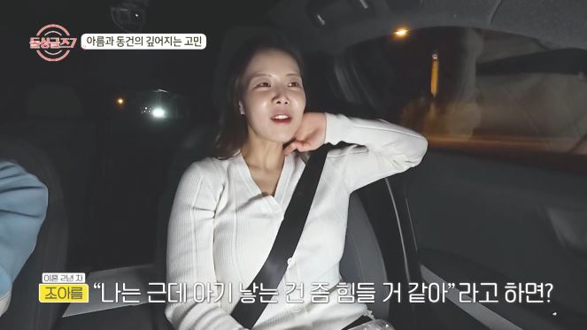 마지막으로 아름은 "결혼 유지 기간은 6년이고, 8세 딸과 6세 아들을 양육 중"이라고 털어놨다. 또한 그는 "이혼을 한 번도 후회한 적은 없다. 아이들은 내 목숨과도 바꿀 수 있는 존재들"이라며 애틋한 모성애를 드러냈다. 그러면서 아름은 "내 상황이 누군가에겐 부담일 수도 있기에, 부담을 주기는 싫다"라고 동건을 염두에 둔 발언을 했다.
