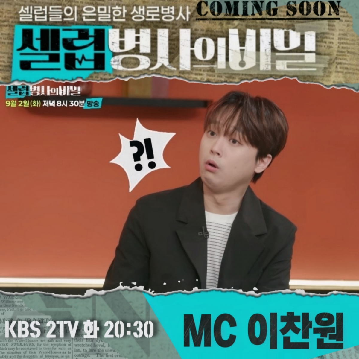 2일 오후 8시 30분 정규 첫 방송하는 KBS 2TV '셀럽병사의 비밀'은 각종 예능 프로그램에서 활약 중인 'MC계의 블루칩' 이찬원을 비롯해 '토크의 여왕' 장도연, 이비인후과 전문의이자 유튜버 겸 웹소설 작가 이낙준이 MC를 맡는다.