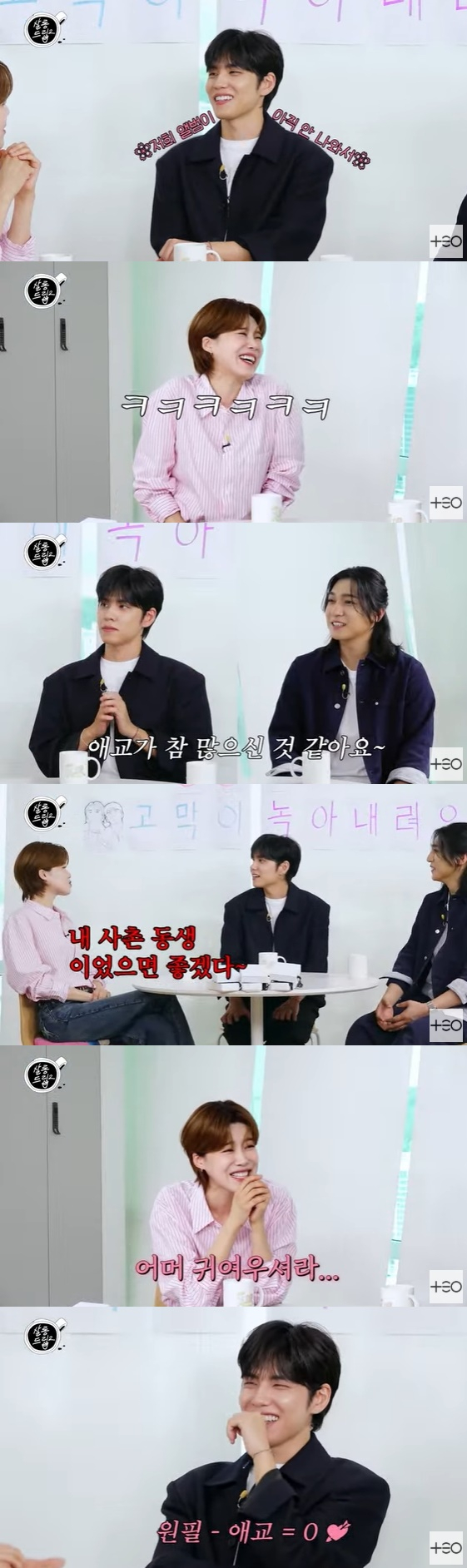 원필의 애교에 장도연은 "내 사촌 동생이었으면 좋겠다. 누나들이 엄청 예뻐할 것 같다"라고 감탄했다.