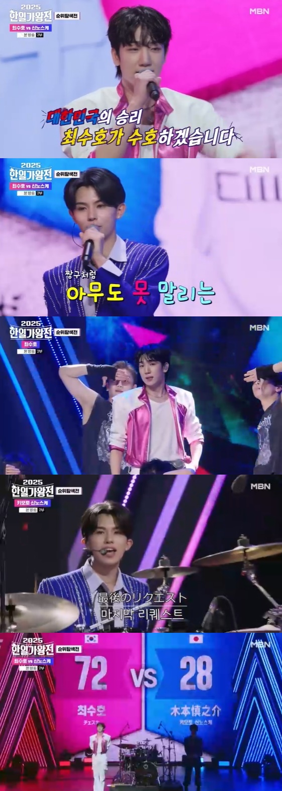 막내 대결로 성사된 이날 무대에서 최수호는 "공교롭게도 막내의 대결이 되었는데 대한민국의 승리를 최수호가 수호하겠다"라고 포부를 밝혔다.