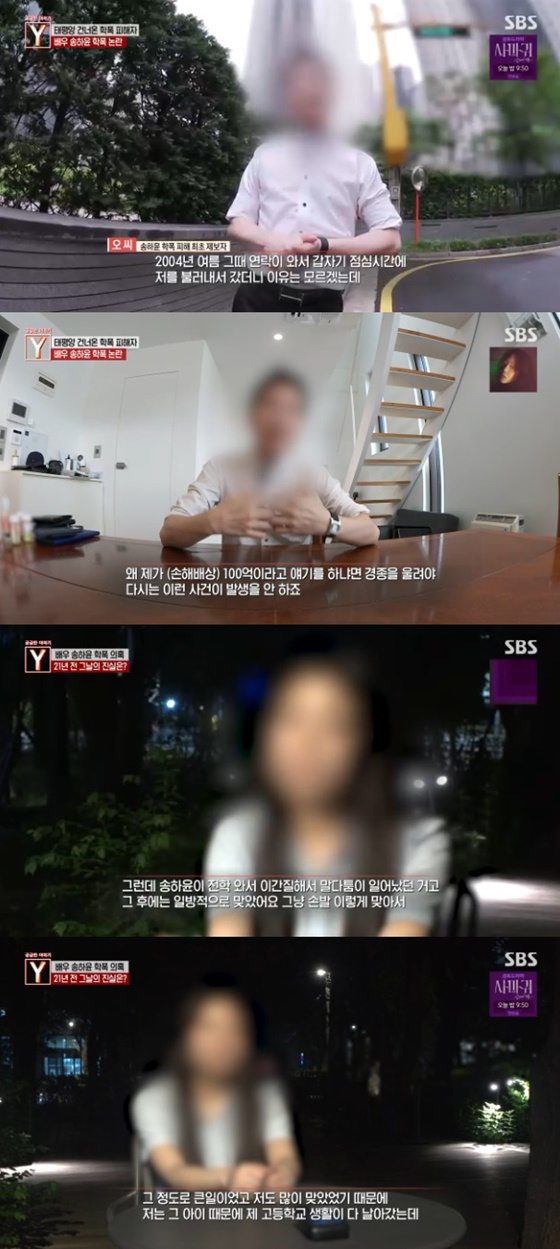 학창시절 송하윤을 포함한 무리에게 집단 폭행을 당했다는 피해자 강현아(가명) 씨도 등장했다.