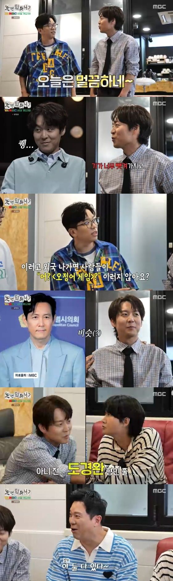 뒤이어 도착한 이용진은 하동균을 이정재라고 소개하는 유재석에게 "아니, 전 도경완 형님인 줄 알았다"고 너스레를 떨어 모두를 폭소케 했다. 정성화 역시 "둘 다 있다"며 닮은꼴을 인정했다.