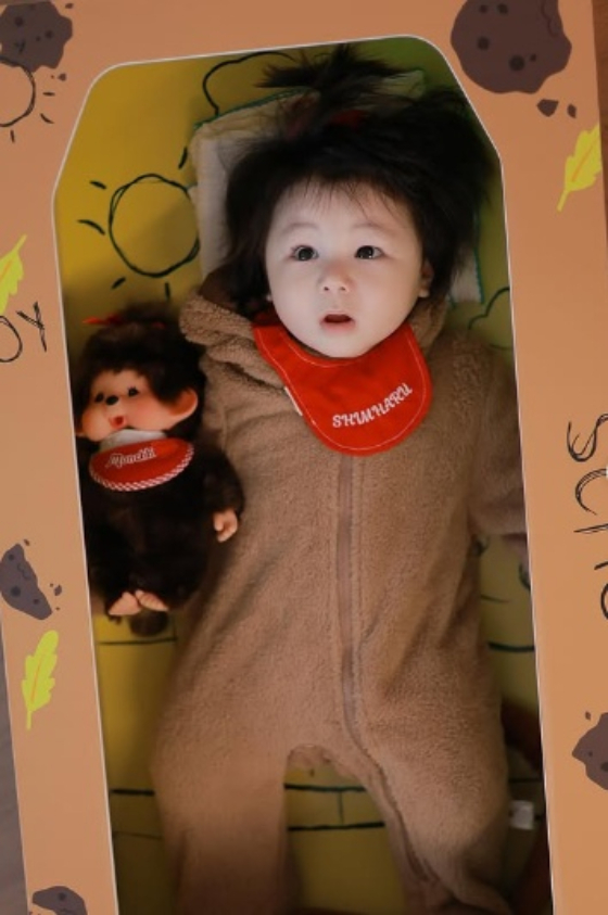 공개된 사진 속 아들 하루는 캐릭터 몬치치로 완벽 변신해 귀여움을 자아냈다. 이어 아빠와 드래곤볼 캐릭터로도 변신해 눈길을 끌었다.