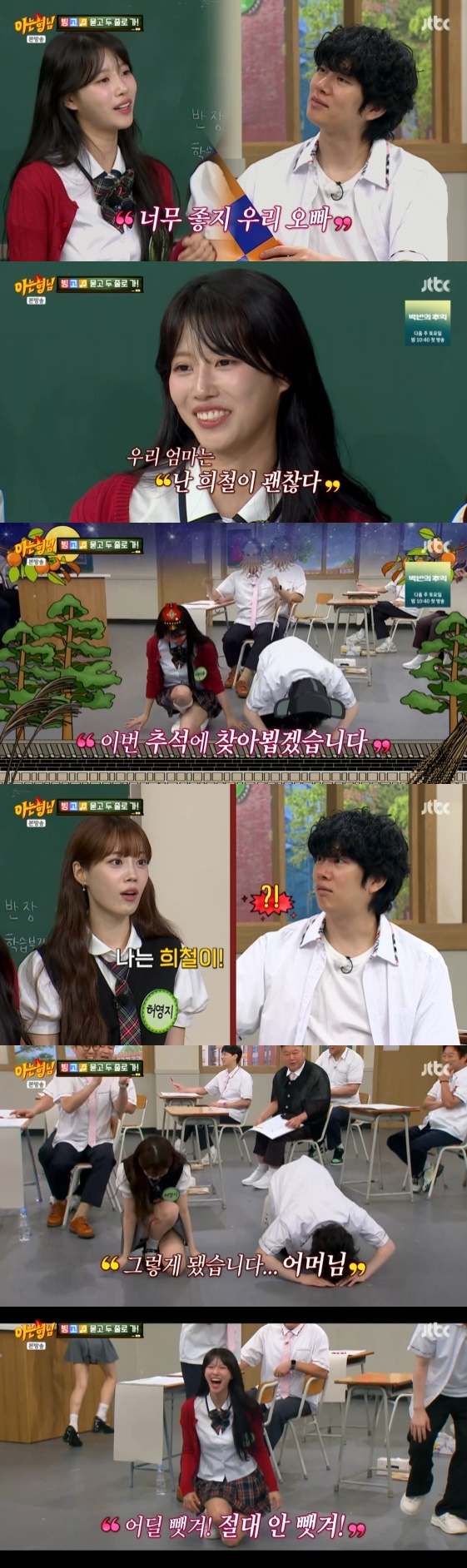 그러자 김희철은 허영지의 손을 잡아끌며 함께 큰절을 했고, 이를 본 이미주는 허영지에게 욕설을 퍼부으며 자리를 빼앗아 현장을 초토화했다.