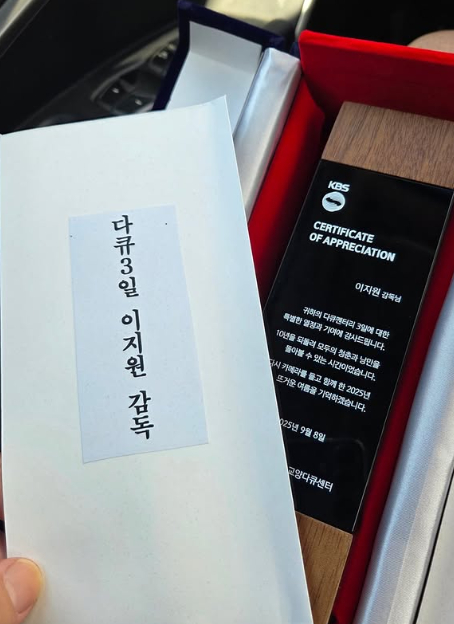KBS 2TV '다큐멘터리 3일'(이하 '다큐 3일') 제작진은 8일 KBS로부터 받은 금일봉 사진과 함께 "금일봉이란 것도 받아보고. 행복한 8월이었습니다"라고 심경 글을 공개했다.