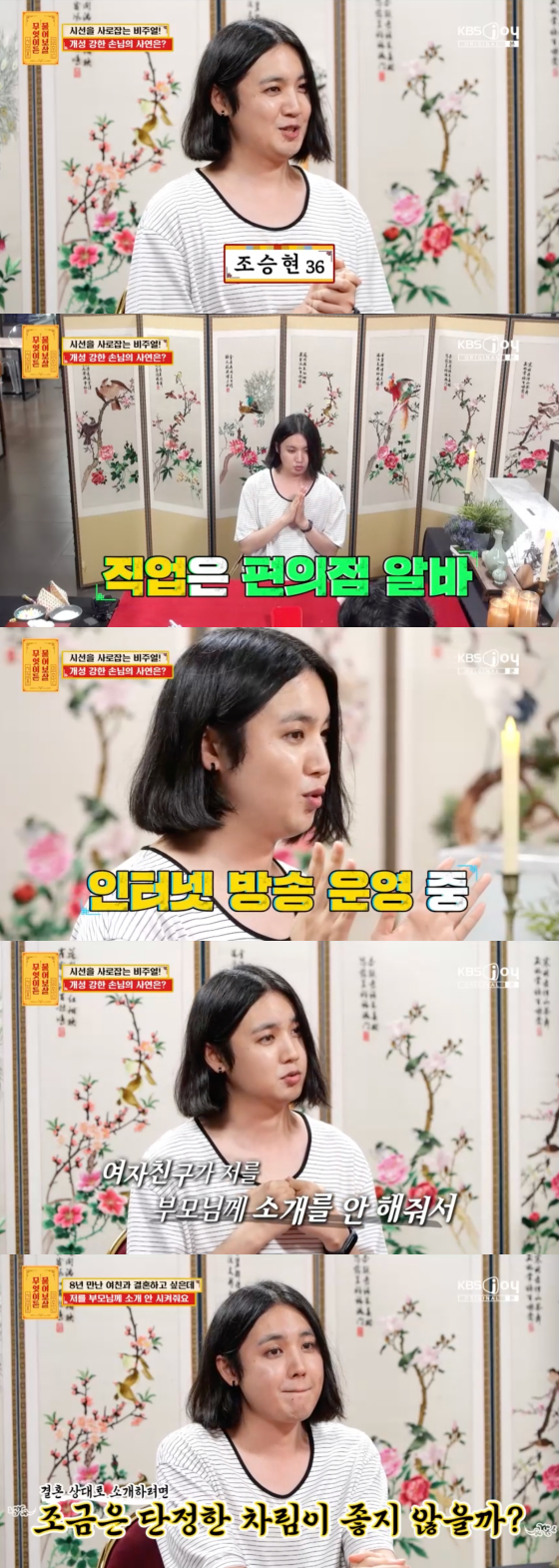 이날 사연자는 "현재 36세다. 현재 편의점에서 아르바이트를 하고, 인터넷 방송도 하고 있다. 여자친구와 8년째 연애 중인데 여자친구가 아직 부모님을 소개해 주지 않고 있다. 저희 부모님께는 소개해드렸다. 결혼 소식이 없으니 부모님이 걱정하신다"고 고민을 털어놨다.