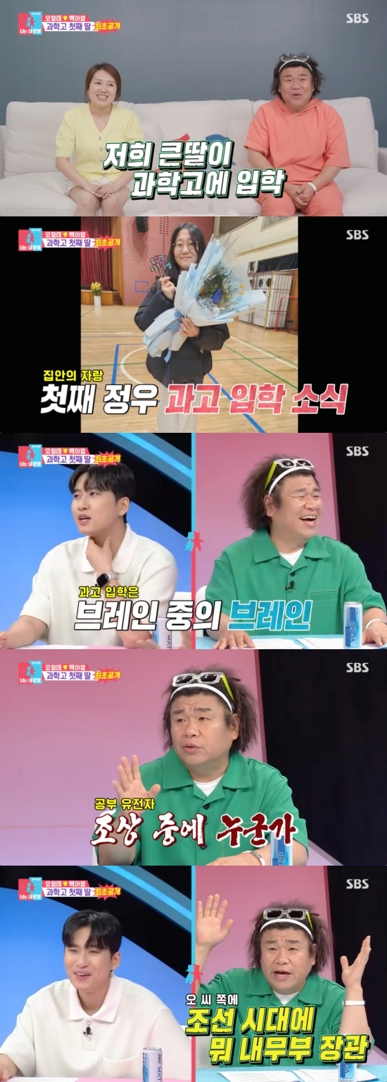이날 오정태, 백아영 부부는 "큰딸이 과학고에 입학했다"고 밝혀 축하를 받았다.