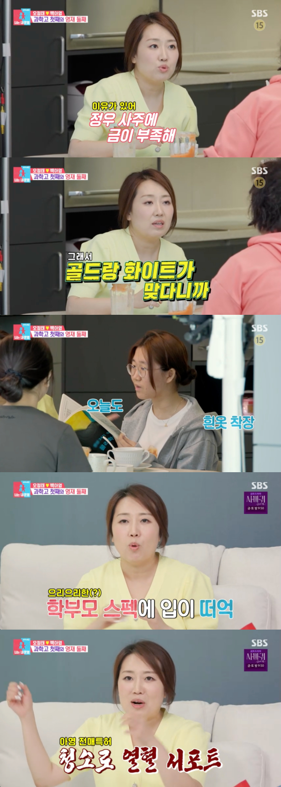 이날 백아영은 "첫째 딸 정우가 올해 3월에 과학고에 입학했다. 아무런 준비 없이 과학고에 간 것"이라고 말문을 열었다.