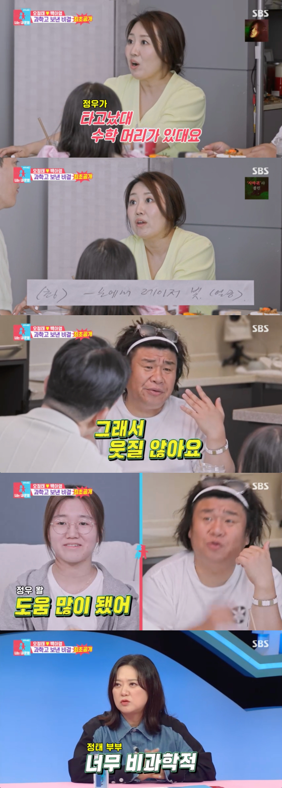 코미디언 오정태, 백아영이 첫째 딸을 과학고에 보낸 비결을 공개했다.