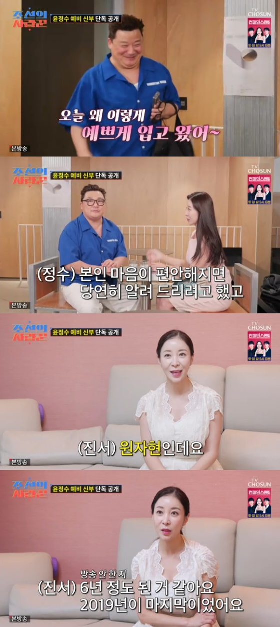 윤정수는 배기성과 임형준에게 예비신부가 원자현임을 고백했다. 그는 원자현에 대해 "지금은 필라테스 강사를 한 지 한참 됐다. 그전에는 스포츠 아나운서를 했다"며 "내가 라디오 할 때 게스트 한 1년 했었다"고 밝혔다.