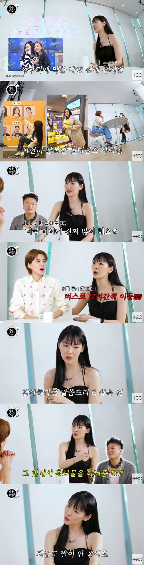 이어 "우리가 방송에서는 'PD님, 그때 미국에 왜 데려갔어요?'라고 말하지만, 너무 감사하다고 말씀드리고 싶다"며 "저희가 버스 앞에서 버스킹 공연하고 있으면 PD님이 저희를 홍보하는 책자를 사람들에게 나눠주셨다. 생각해보니까 그때 PD님 나이가 40살밖에 안 됐을 거다"라고 고마움을 전했다.