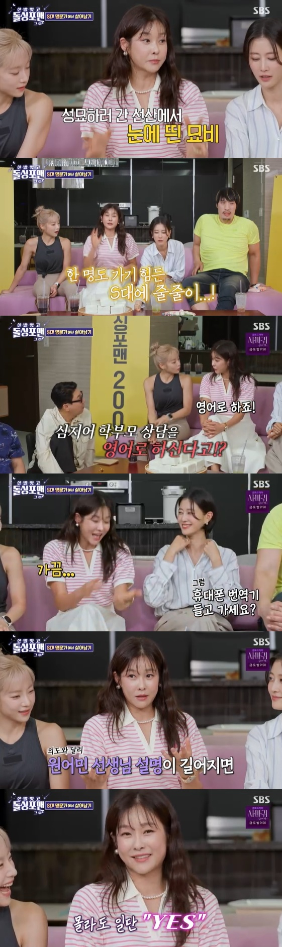 그런가 하면 현영은 국제학교에 재학 중인 자녀를 위해 영어로 학부모 상담을 한다고 밝혀 시선을 모았다. 탁재훈이 "휴대폰 번역기를 들고 가느냐"라고 기습 질문을 던지자 현영은 "가끔 들고 간다. 물어볼 내용을 넣어서 내 질문만 외우고 간다. 내 의도와 다르게 원어민 선생님이 너무 길게 설명하면 내용을 몰라도 'Yes'라고 한다"라고 답해 모두를 폭소케 했다.