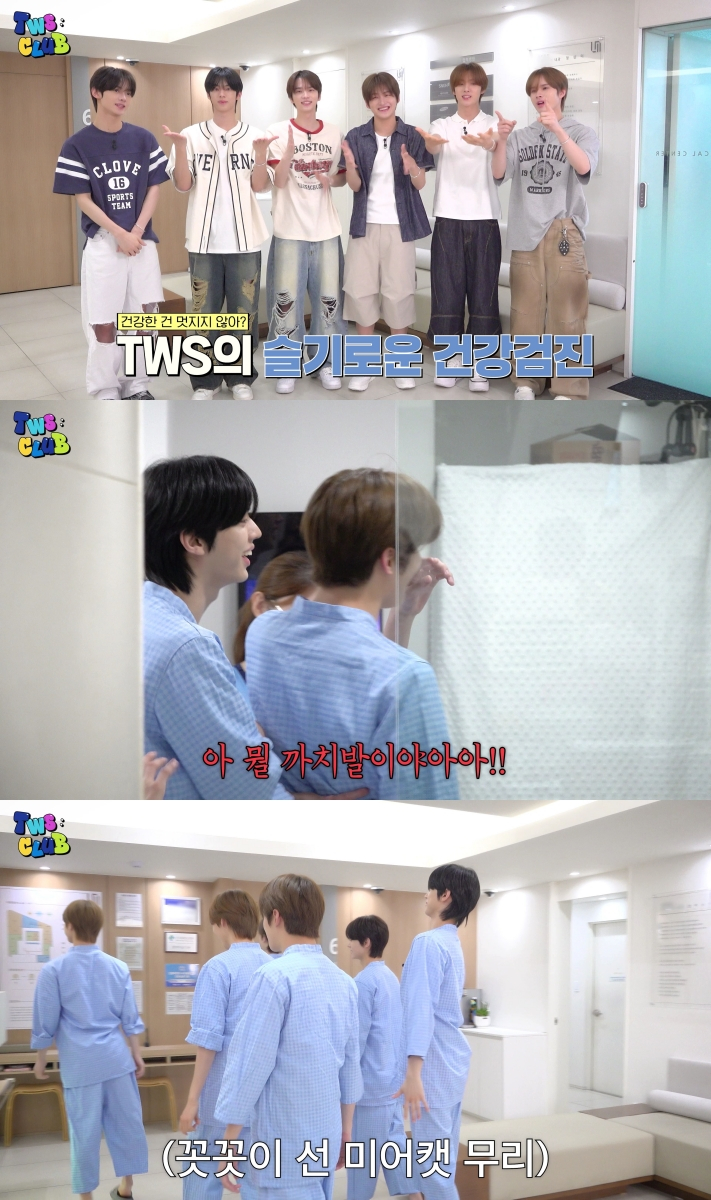 TWS(신유, 도훈, 영재, 한진, 지훈, 경민)는 9일 오후 9시 팀 공식 유튜브 및 글로벌 슈퍼팬 플랫폼 위버스(Weverse)를 통해 정규 자체 콘텐츠 'TWS:CLUB' 건강검진 편 두 번째 에피소드를 공개했다. 이를 끝으로 멤버들은 올여름을 뜨겁게 물들인 '자컨' 릴레이를 잠시 쉬어간다.