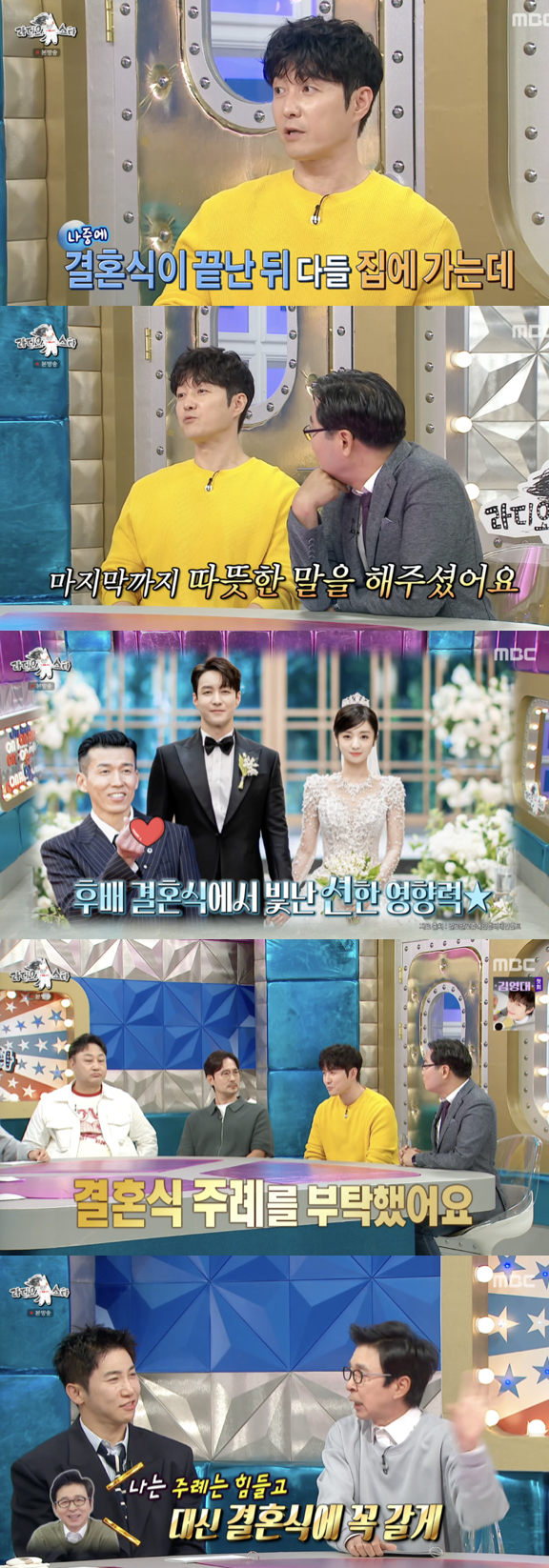 이날 심형탁은 결혼을 앞두고 출연했던 '라디오스타' 방송을 회상하며 당시 아내 사야가 직접 그린 커리커처가 들어간 청첩장을 전달했었던 것을 언급했다. 이어 그는 MC 김국진에게 주례를 따로 부탁했지만 거절당했다고 털어놨다. 다만 김국진이 결혼식에 직접 찾아와 자리를 빛내줬다며 감사의 마음을 전했다.