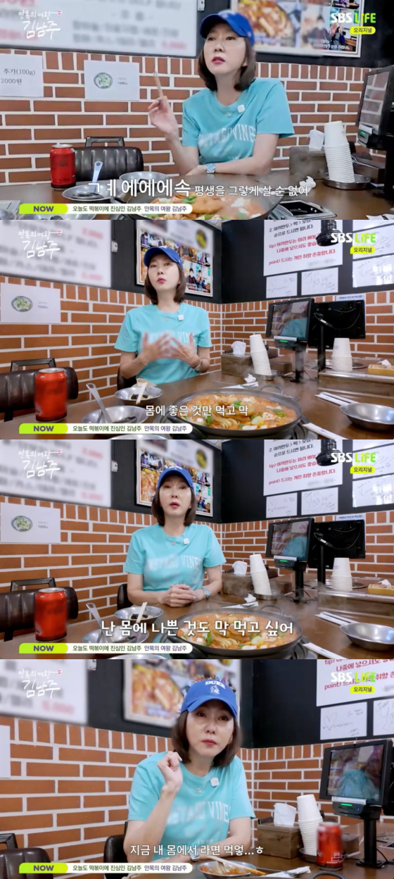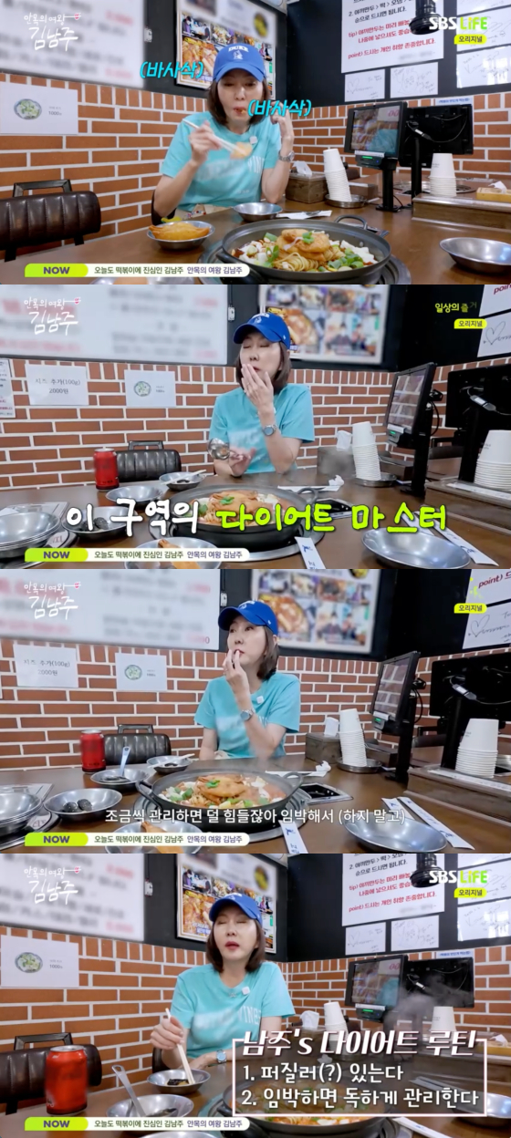 이날 김남주는 떡볶이를 흡입하던 중 "내가 다이어트를 이렇게도 해보고 저렇게도 해봤다"고 말문을 열었다.