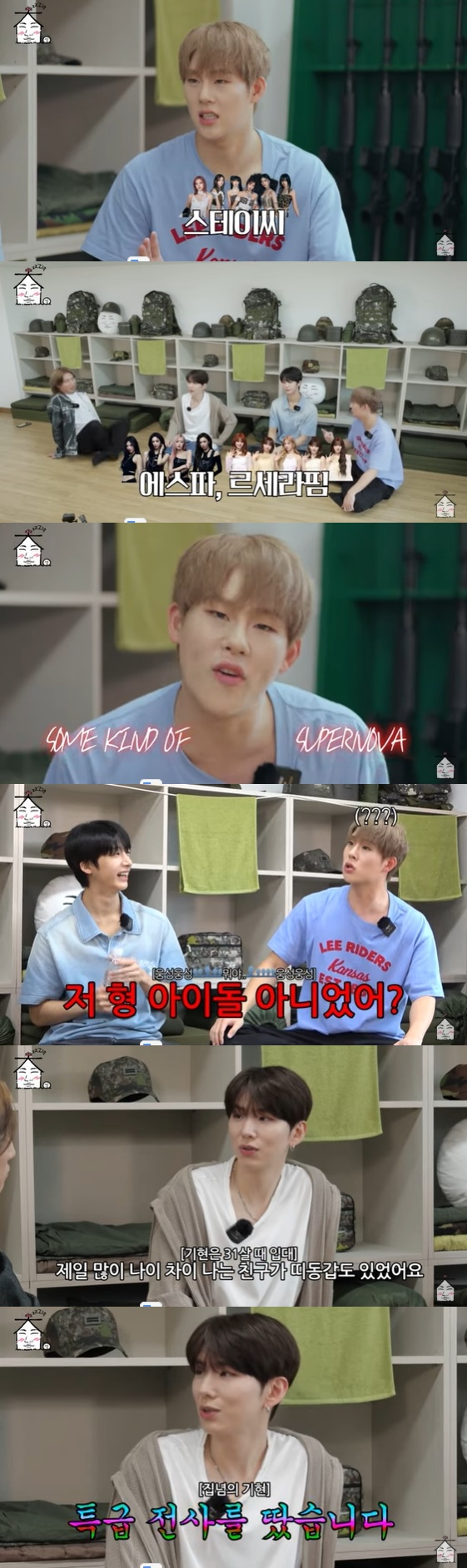 이에 주헌은 "제가 군대에 들어갔을 때는 스테이시, 에스파, 르세라핌이 인기였다"고 밝혔고, 기현은 "진짜 웃긴 게 TV에 음악 소리를 켜놓고 생활관 문을 열어 놓으면 다 홀린 듯이 한 명씩 지나가다가 보고 있다. 너무 귀엽더라"라고 전했다.