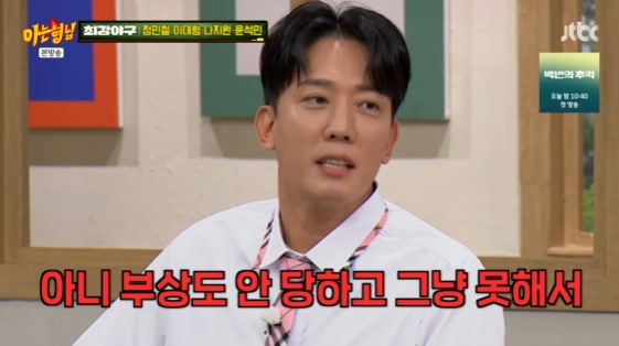 13일 방송된 JTBC 예능 프로그램 '아는 형님'에서는 '최강야구' 출연진 정민철, 이대형, 나지완, 윤석민이 출연해 거침없는 입담을 뽐냈다. 이날은 김환과 장성규가 '일일 형님'으로 등장해 게스트들과 케미를 선보였다.