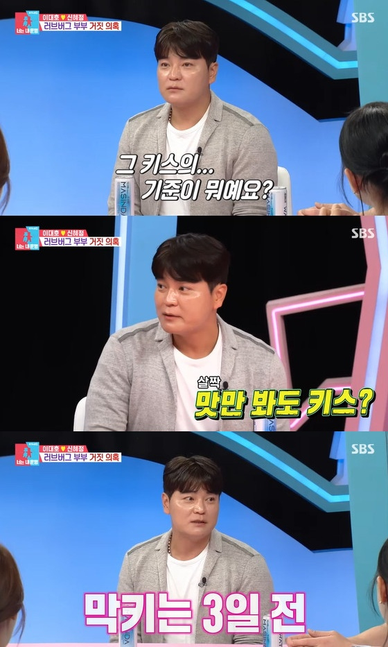 이날 추신수는 30년 지기 절친 이대호가 아내 신혜정 씨와 모닝 키스를 나누는 VCR 영상을 지켜봤다. 이를 두고 연출 의혹이 일자 신혜정 씨는 "연출 아니고 평상시에 더한다. 솔직히 저건 조금 덜한 거다"라고 '사랑꾼' 부부의 면모를 자랑했다.