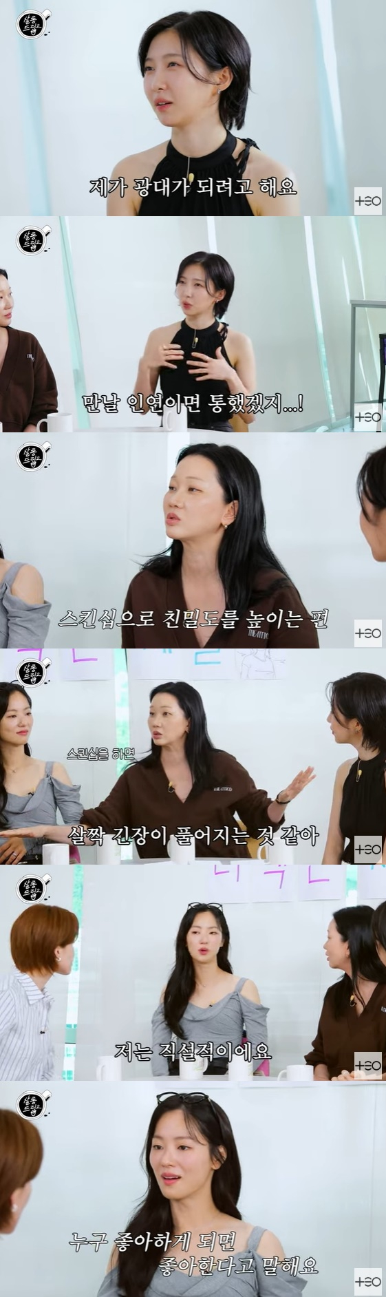 그런가 하면 장윤주는 상대의 호감을 하기 위해 과감한 스킨십을 선보인다고 밝혀 시선을 모았다. 그는 "나의 노하우 중 하나가 스킨십을 과감하게 한다. 허그를 한다거나 자연스럽게 스킨십을 하면 살짝 긴장이 풀어지는 것 같다"라고 고백했다.