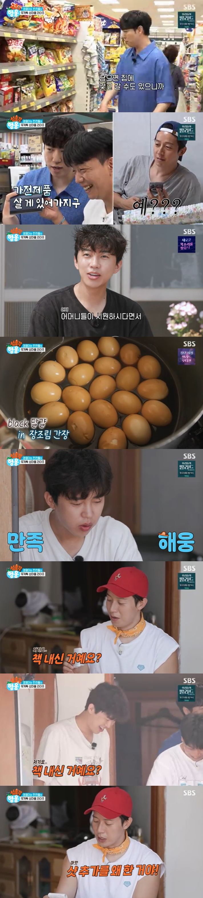 다음날 아침 궤도와 임태훈은 허경환의 카드로 34만 원어치 장보기와 스태프 커피 10잔 사기까지 흥청망청 돈을 쓰는 듯 보였다. 임영웅은 땀을 뻘뻘 흘리면서도 "시원하다. 왜 어제 어머님들이 시원하다고 했는지 이해가 간다"라며 강철멘탈을 자랑, 장조림 달걀 만들기에 성공했다.