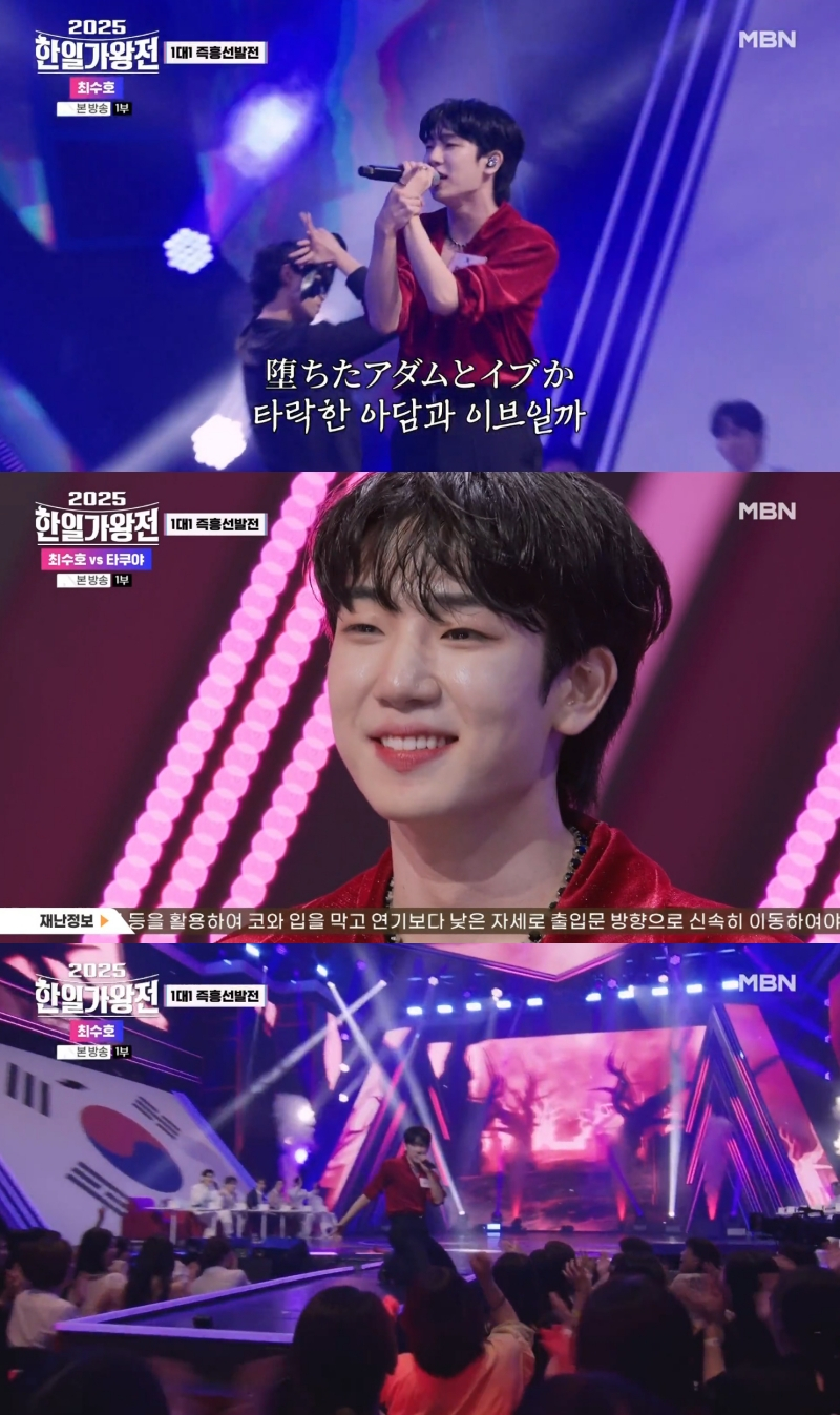 가수 최수호가 '한일가왕전' 3연승을 이뤘다.