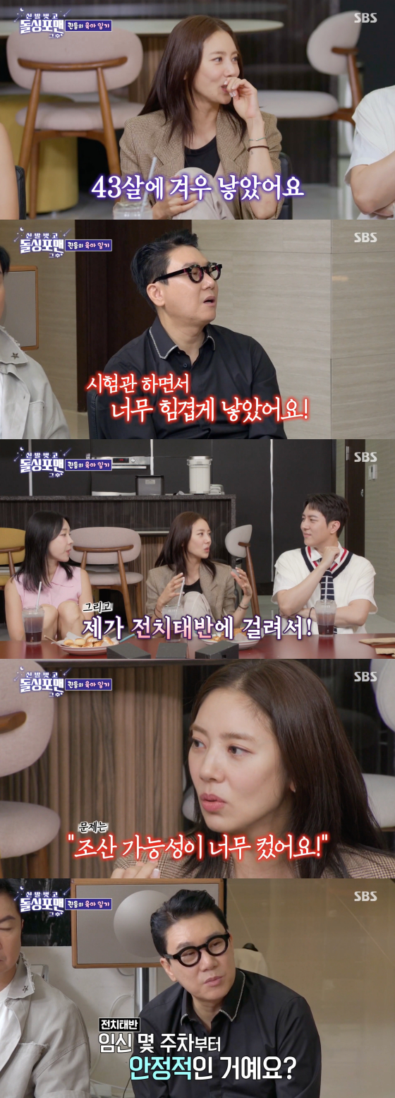 손담비는 "43세에 한 명도 겨우 낳았다. 너무 힘들게 낳았다. 시험관 시술도 하고 전치태반도 걸렸다"고 답했다.