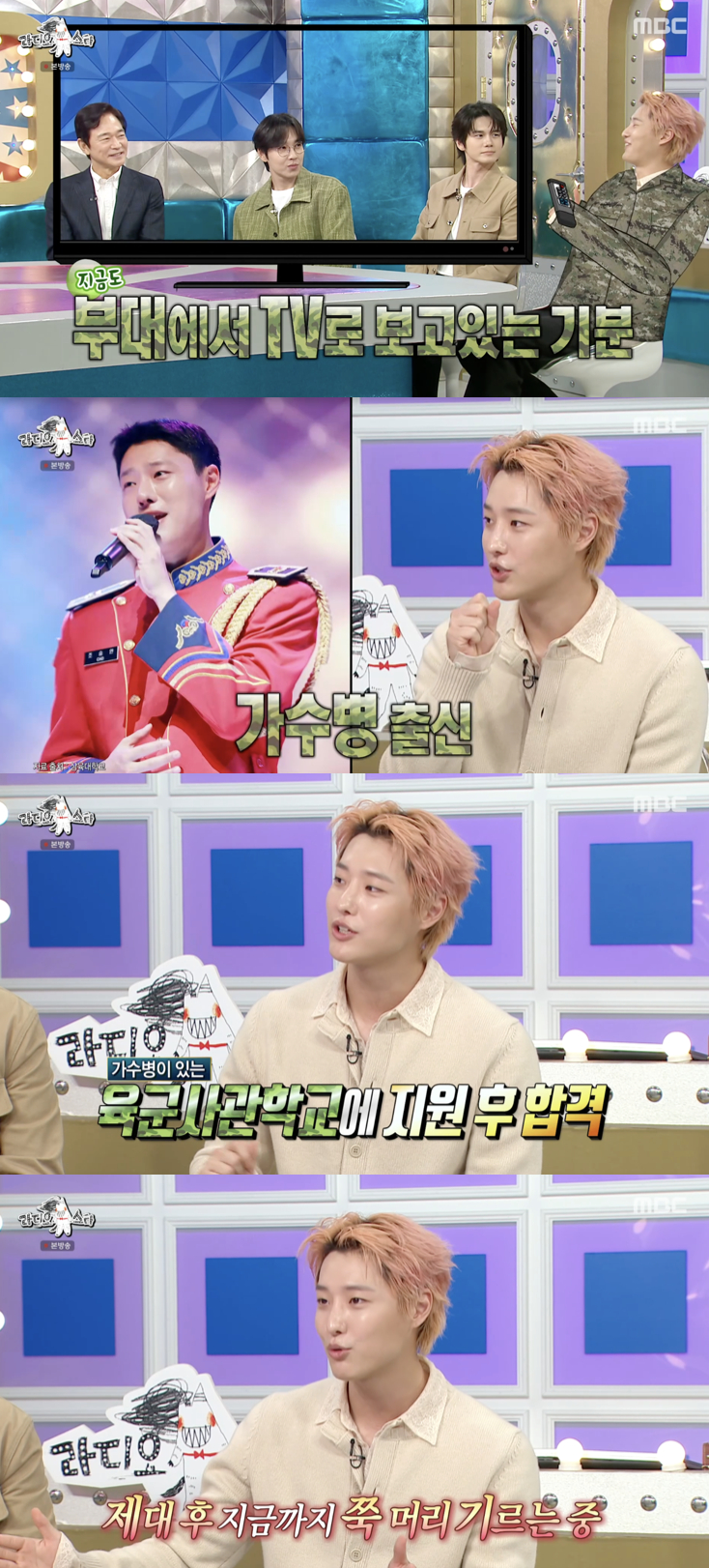 김구라가 "머리가 많이 길었다"고 하자, 그는 "제가 군악대였다. 군악대 특성상 너무 짧은 머리는 못 하게 한다"며 제대 후 머리를 기르고 있는 이유를 설명했다.