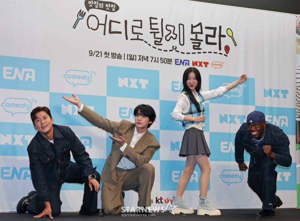 19일 오전 서울 마포구 상암동 스탠포드호텔 서울 그랜드볼룸에서 ENA, NXT, 코미디TV 예능 프로그램 '어디로 튈지 몰라'(이하 '어튈라') 제작발표회가 열렸다. 김대호, 안재현, 쯔양, 조나단이 참석했다.