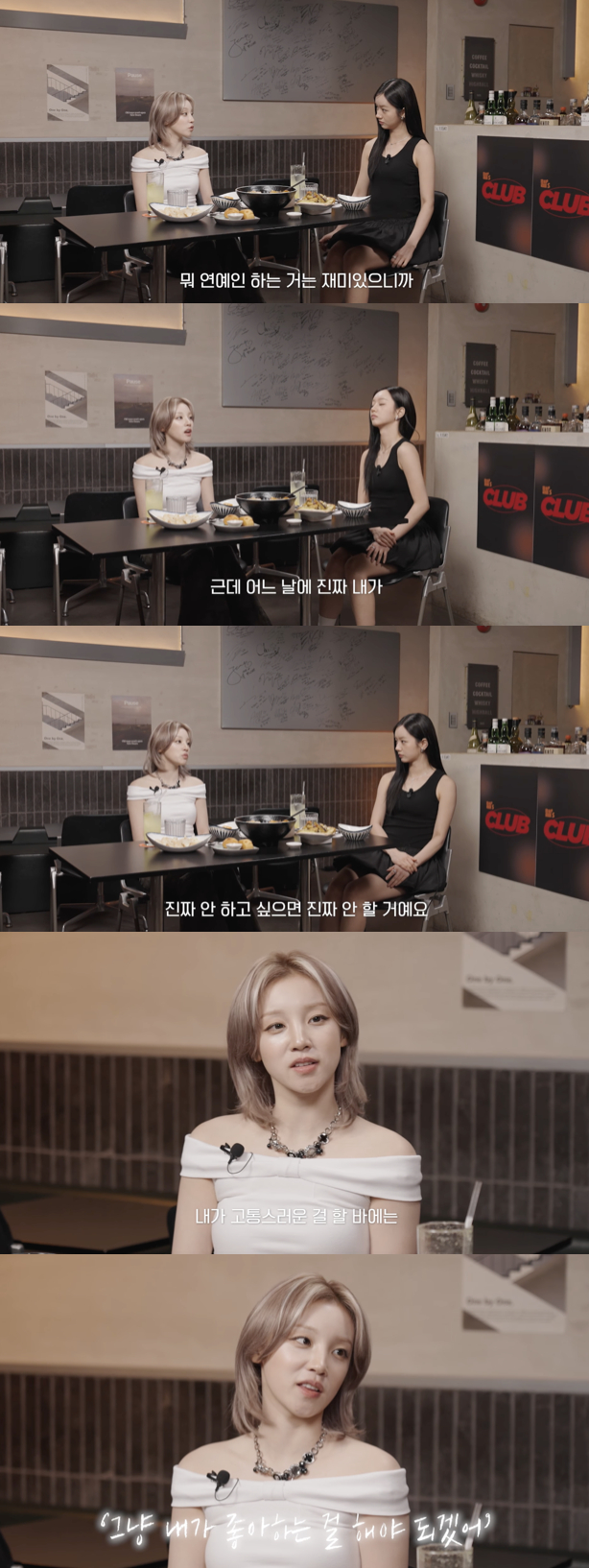 그는 "아직 연예인 하는거 재밌으니까 한다. 그런데 어느날 내가 재미없고, 진짜 안 하고 싶으면 안 할거다. 오래산건 아니지만 인생이 생각보다 짧은 것 같다. 짧은 시간 안에 내가 고통스러운 걸 할 바에는 내가 좋은 걸 할 것"이라고 솔직하게 털어놓았다.