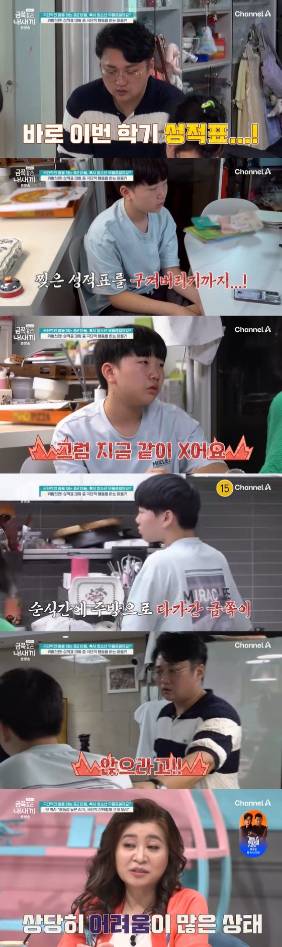 한편 아빠는 금쪽이를 불러내 금쪽이가 감춰둔 성적표를 내밀었다. 아빠는 "앞으로 어떻게 할거냐. 너의 의견을 듣고 싶다"라고 물었으나 금쪽이는 몸을 돌려 대화를 피하는 등 시선을 외면했다.
