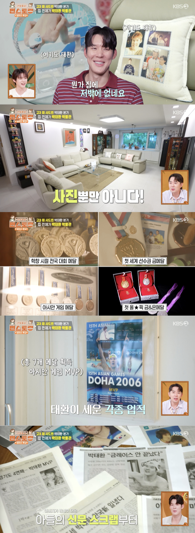 올림픽 메달과 기록증서, 아버지가 정성스럽게 모은 기사 스크랩, 어머니가 직접 녹화한 경기 영상까지 집 안 곳곳을 채우며 시선을 끌었다. 이에 셰프 이연복은 "박태환 박물관이다"라고 감탄했다.