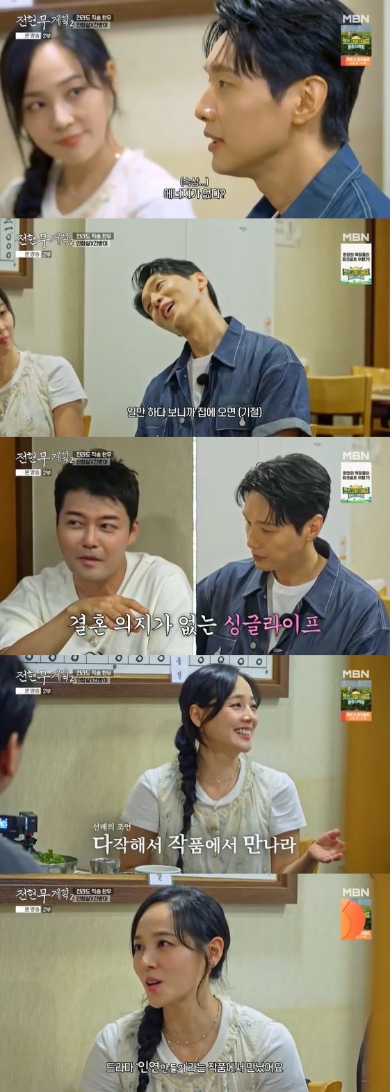 두 사람의 대화를 경청하던 '기혼자' 유진은 지현우를 향해 "너는 다작하는 수밖에 없다. 기회가 그것밖에 없다"라고 조언했다. 유진은 과거 MBC 드라마 '인연 만들기'에서 호흡을 맞춘 배우 기태영과 결혼한 사실을 언급하며 다작을 강력 추천했다.